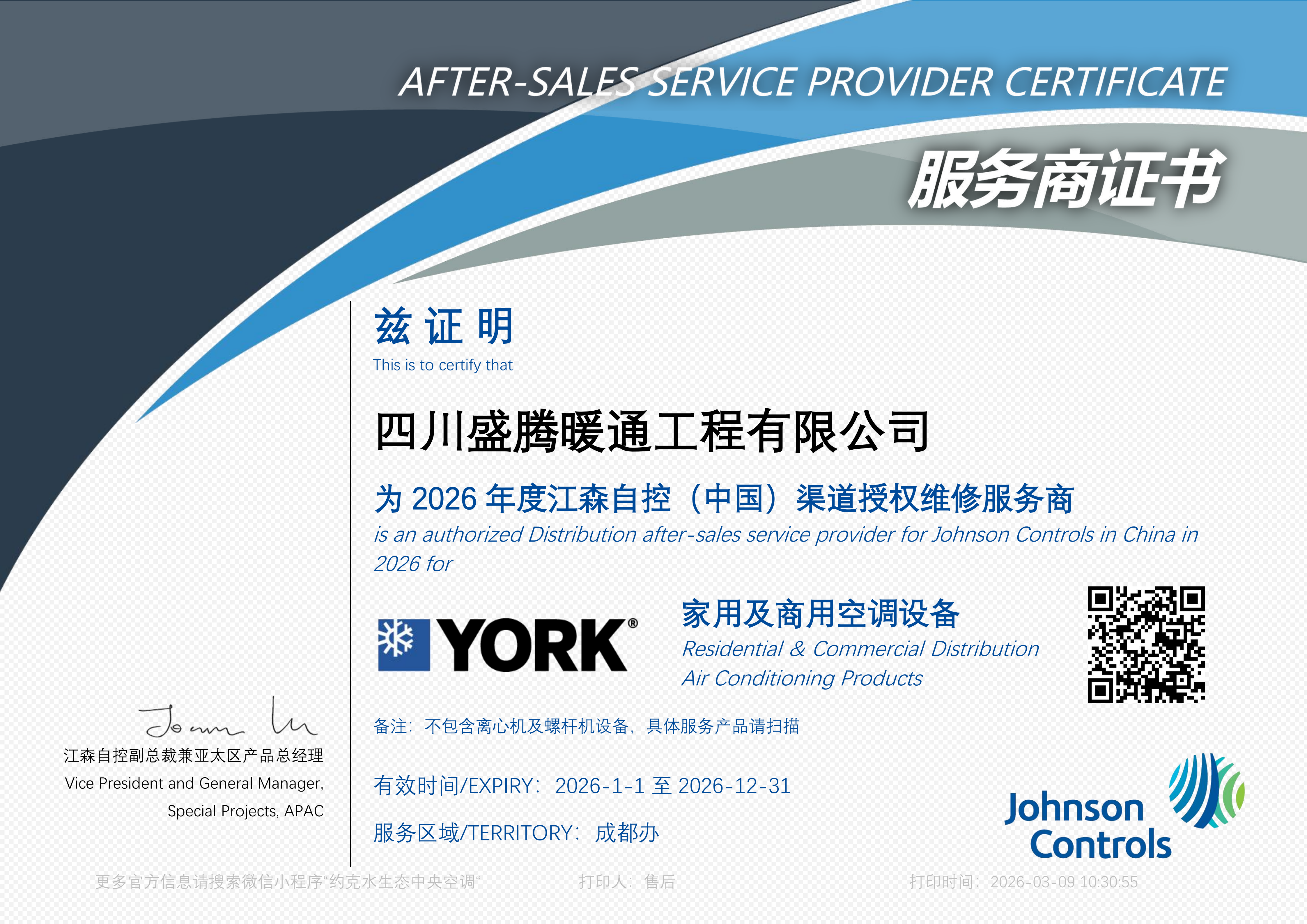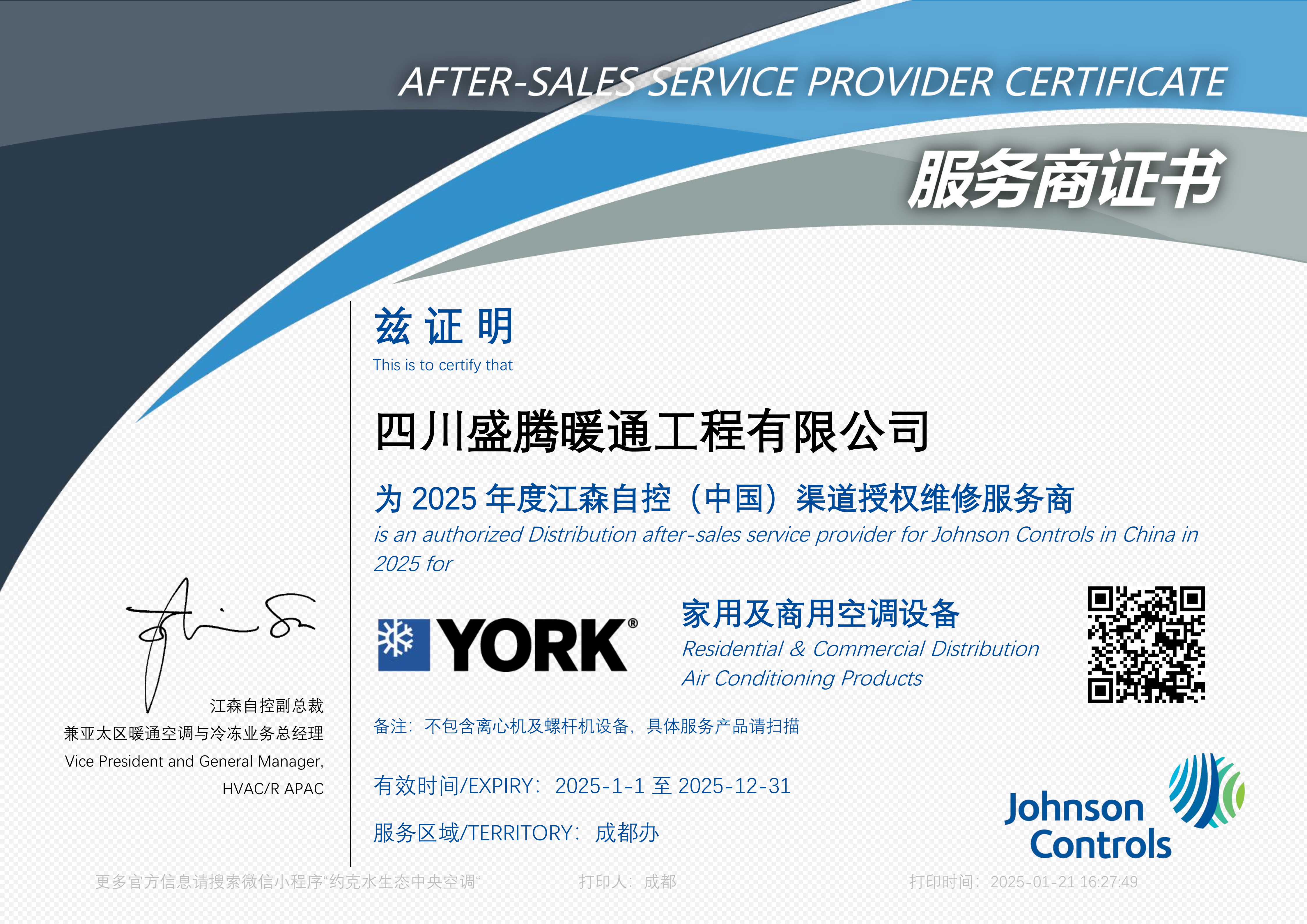 服务工程师资质证书